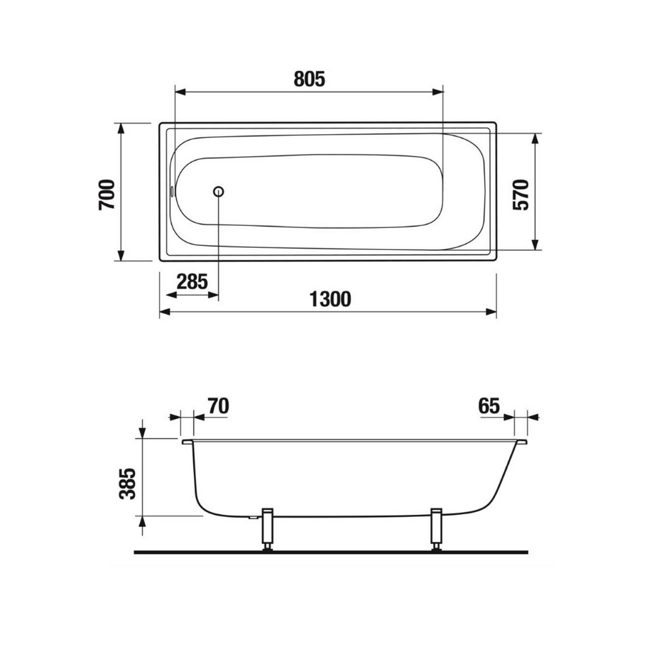 Jika (Groupe Roca) Riga 130 x 70 cm Baignoire gain de place 150 L en acier émaillé, sans pieds, blanc (H2340300000001)