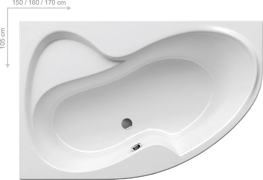 Ravak Rosa II 170 x 105 cm Baignoire d'angle orientation droite en acrylique, sans pieds, blanc (C421000000)