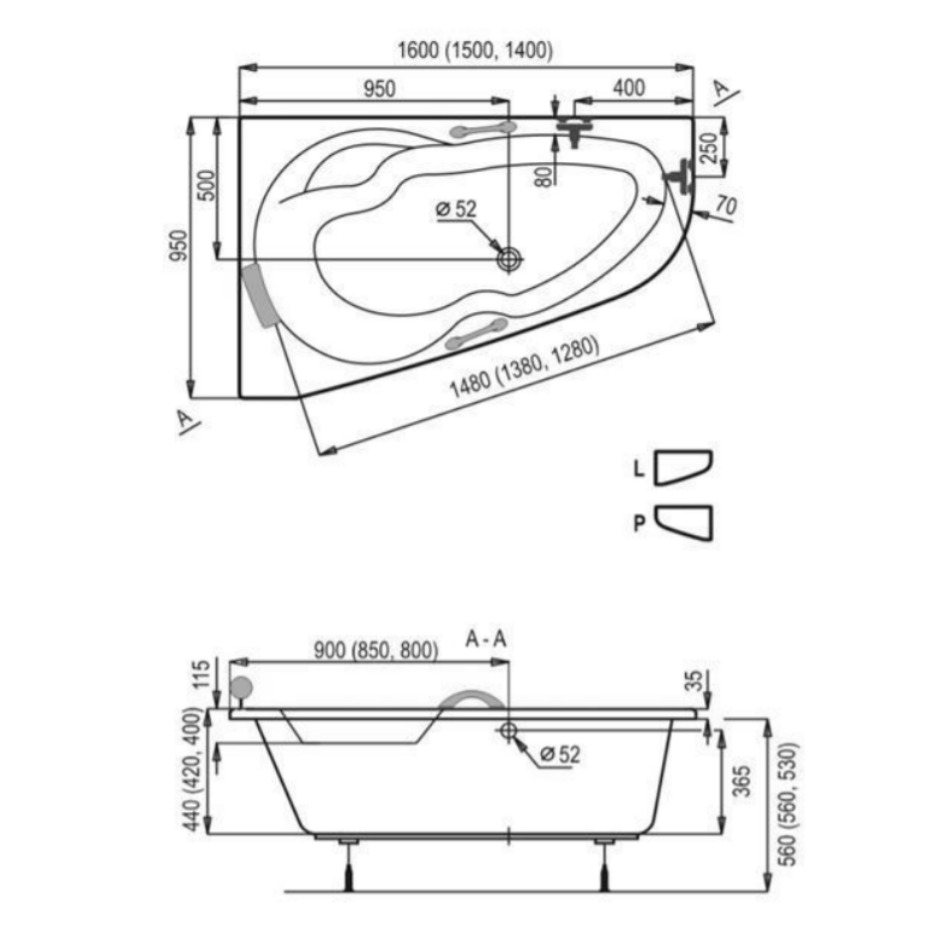 - Type de baignoire:Asymétrique