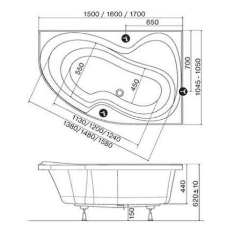 ROSA II 150x105 cm Baignoire d'angle orientation droite en acrylique, sans pieds, blanc (RO1500NEWP)