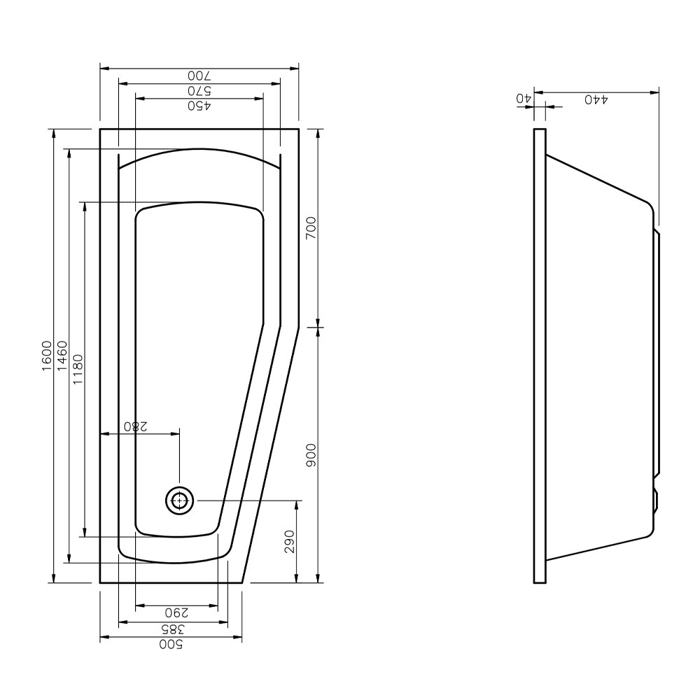 Caractéristiques de Laguna Aneta Baignoire bain douche asymétrique 160x70 cm acrylique positionnement droite, blanc (AN1600PPLUS) :