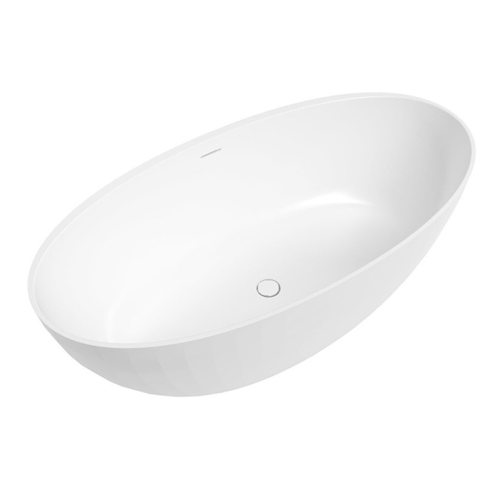 Swiss Aqua Technologies Costa 167x83 cm Baignoire ilot autoportante en marbre coulé 312L, sans pieds, blanc (SATCO1670)