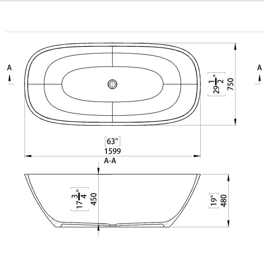 Caractéristiques de la Swiss Aqua Technologies Silva Baignoire îlot 160x75 en Marbre Coulé, (SATSIL1600)