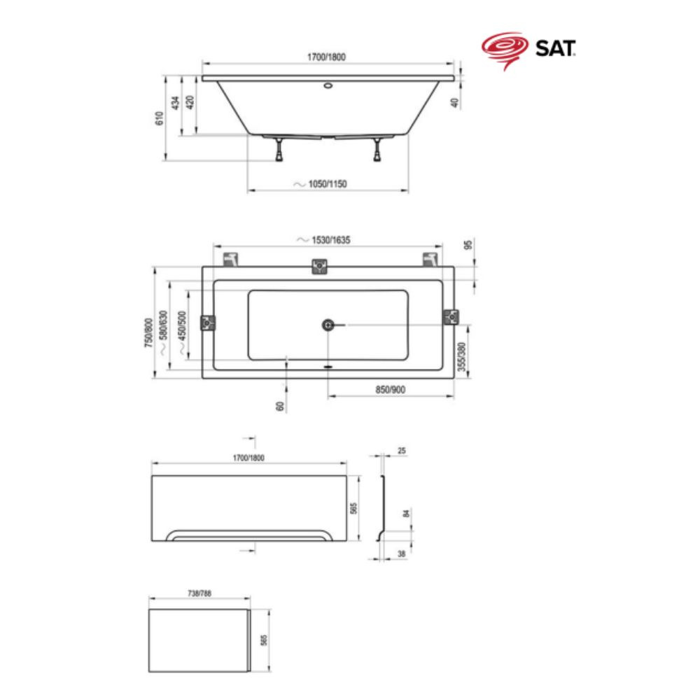 Caractéristiques de la baignoire rectangulaire Swiss Aqua Technologies B-Way, 180x80 cm, acrylique, gauche et droite, blanc (SATVRBW180):
