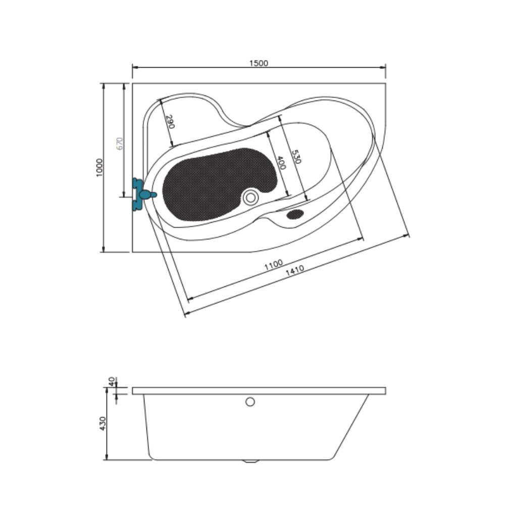 - Type de baignoire:Asymétrique