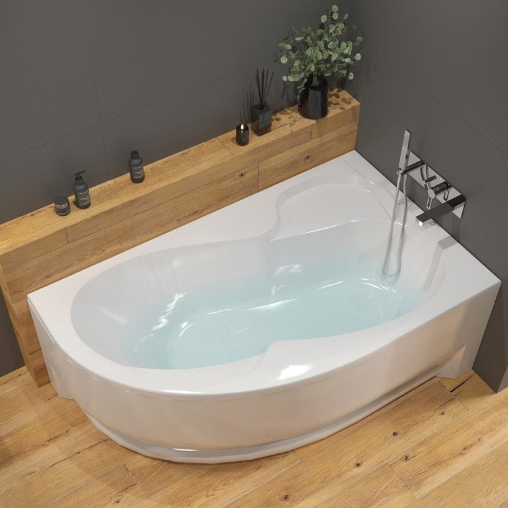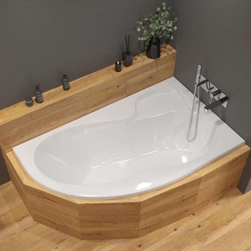 Siko 150x100 cm Fortuna Plus baignoire asymétrique en acrylique, droite, sans pieds, blanc (FO1500PPLUS)