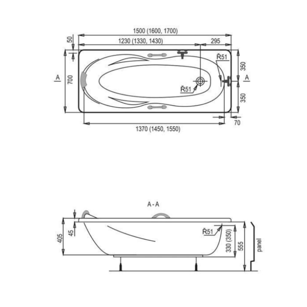 Caractéristiques de la baignoire rectangulaire Laguna Mahé, 170x70 cm, acrylique, gauche et droite, blanc (MH1700NEW):