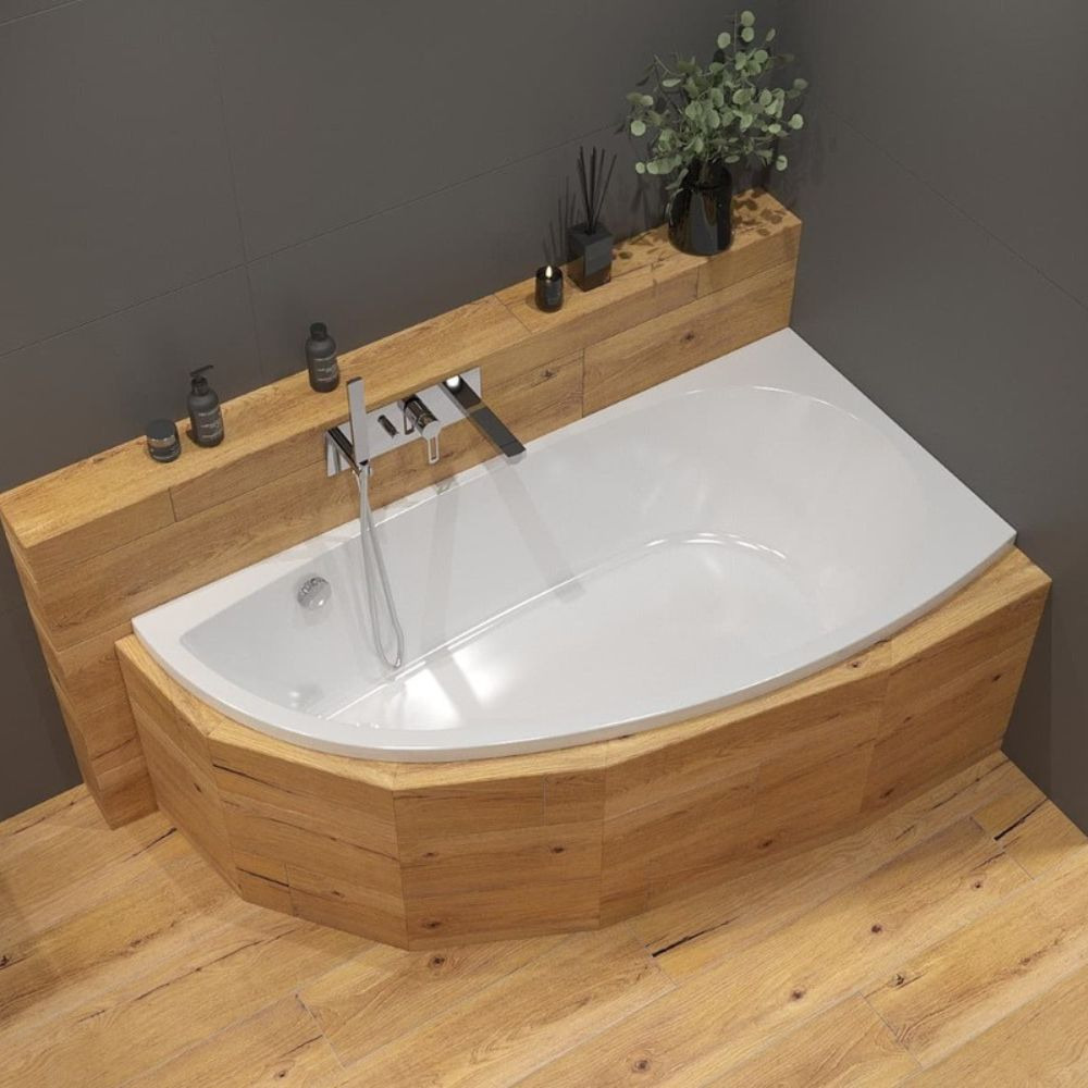 Siko Poli 160x80 cm Baignoire asymétrique en acrylique, droite, sans pieds, blanc (SATPOLI1600P)