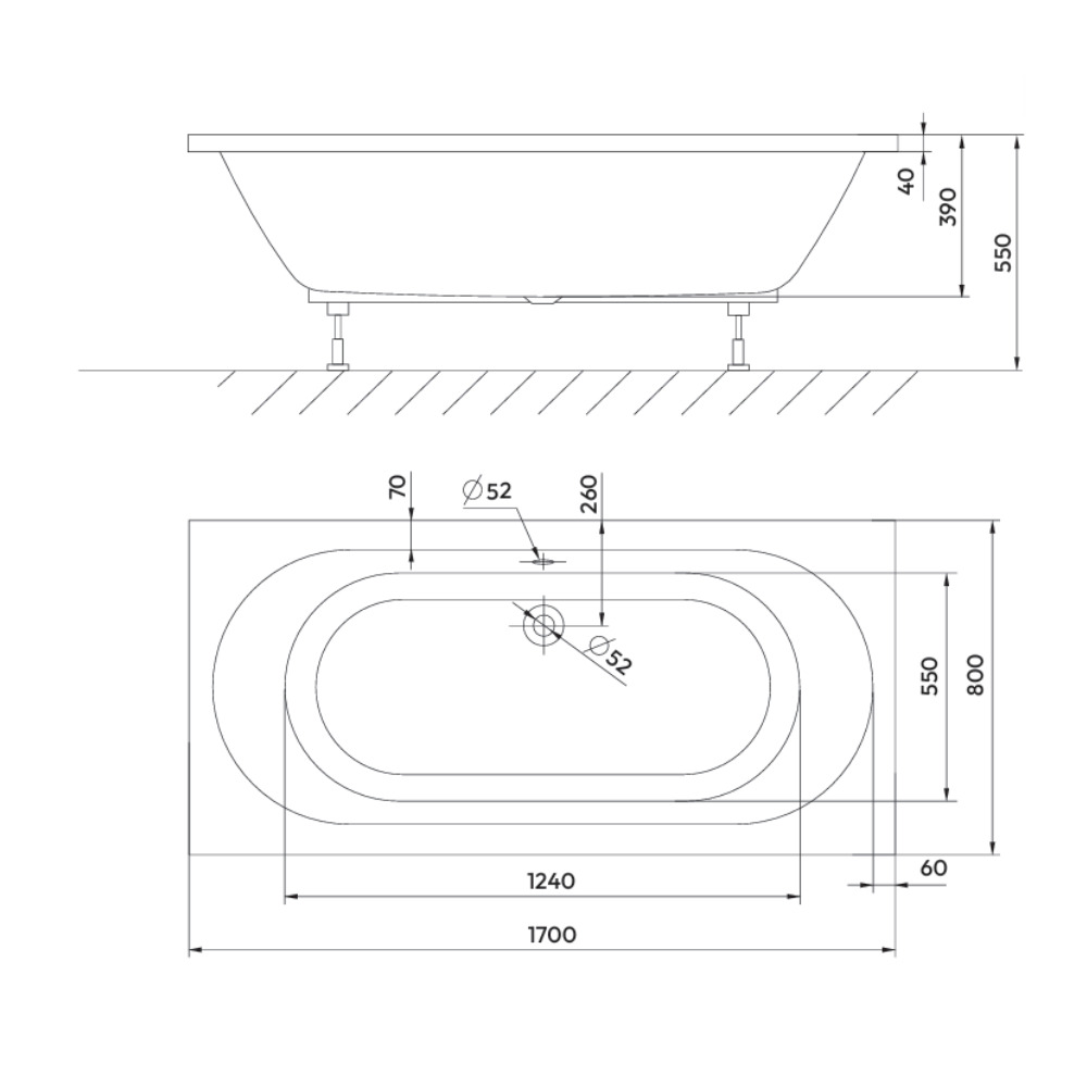 Aurum 170x80 cm baignoire rectangulaire en acrylique, orientation gauche et droite, sans pieds, blanc (SATVINF170) :