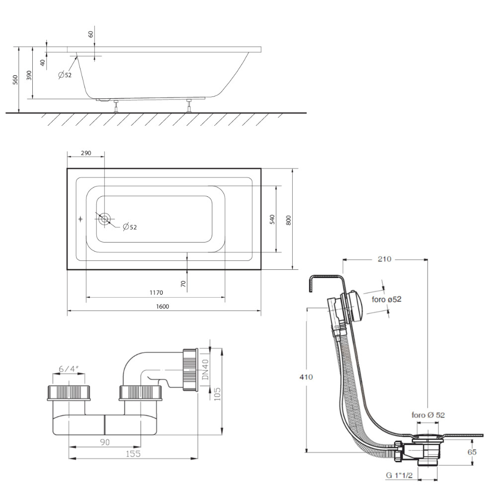 Siphon de baignoire MULTI 6/4x40mm-B /mères (E719) :