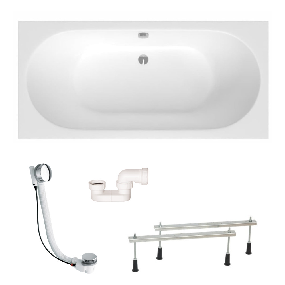 Aurum 170x80 cm baignoire rectangulaire en acrylique, gauche et droite, avec pieds + vidage + siphon, blanc (SATVINF170-SET)