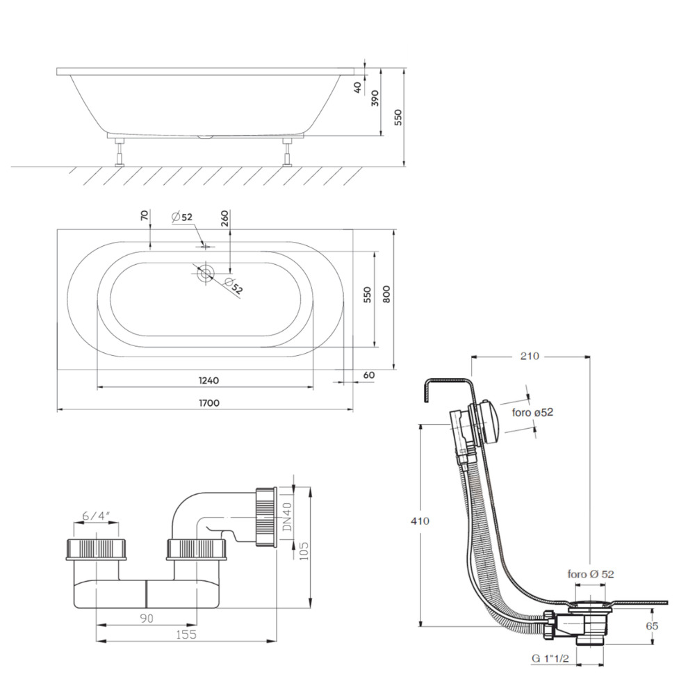 Siphon de baignoire MULTI 6/4x40mm-B /mères (E719) :