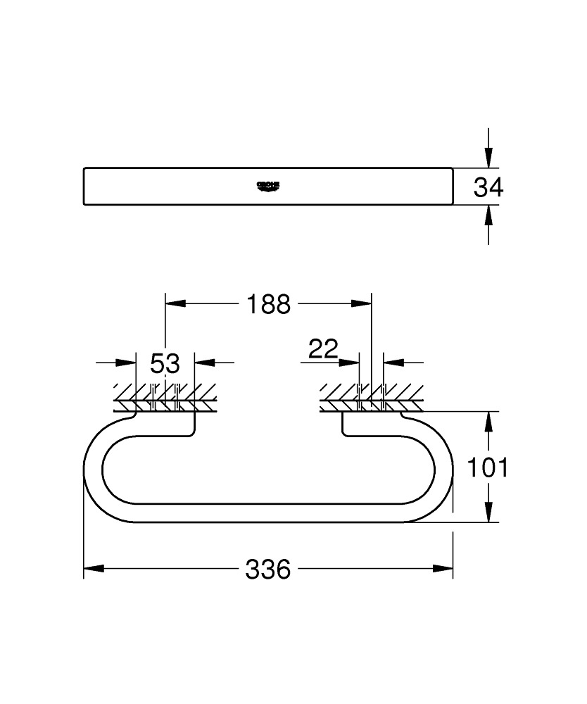 Caractéristiques de la Barre d’appui en métal avec fixations cachées, Chrome Grohe Selection (41064000) :