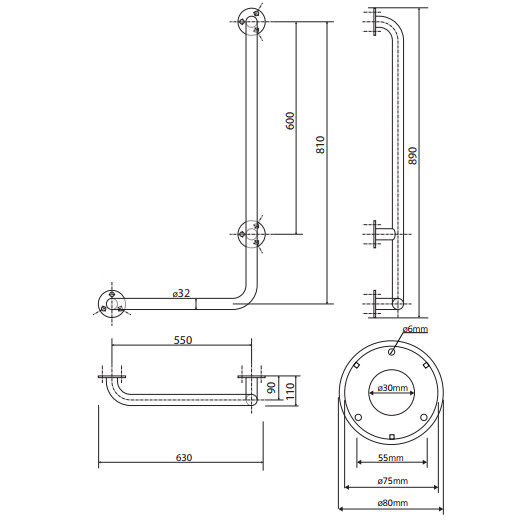 Caractéristiques de la Barre de maintien fixe 80x55cm droit en forme de L, pose à droite, Comaxite, Blanc, Bemeta Help (301122044) :