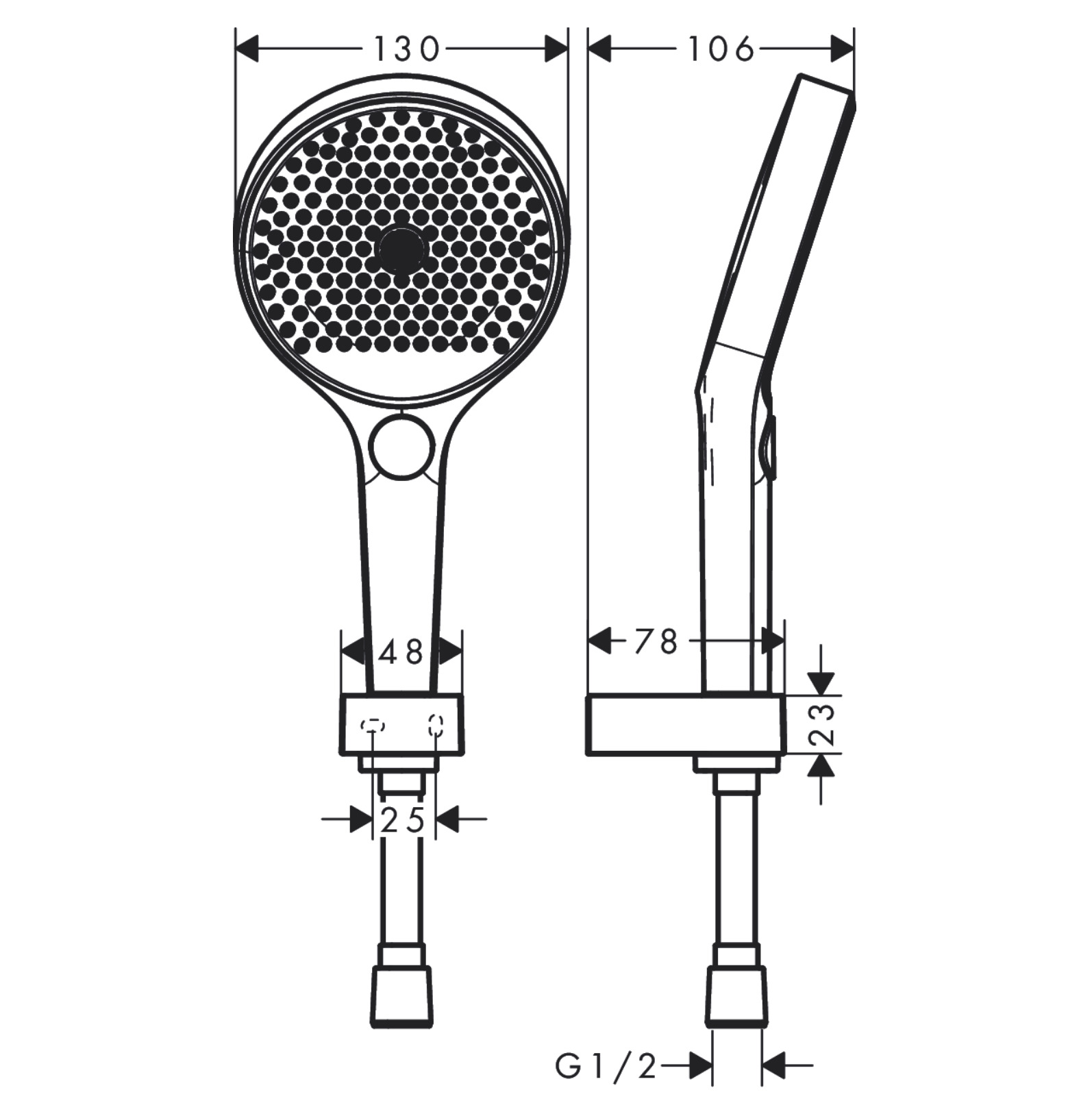 Caractéristiques de l'Ensemble support mural et douche à main Rainfinity 130, 3 jets avec flexible de douche 125 cm, blanc mat (26852700) :