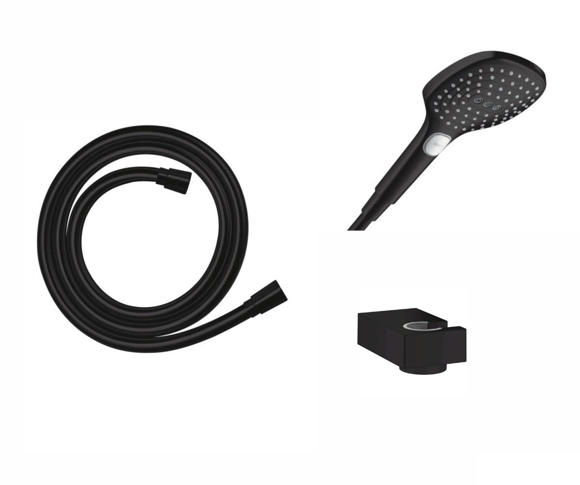 Hansgrohe Pack Raindance Select E noir mat douchette 3 jets avec flexible de douche Isiflex et support mural (RaindanceNoirMat-2)