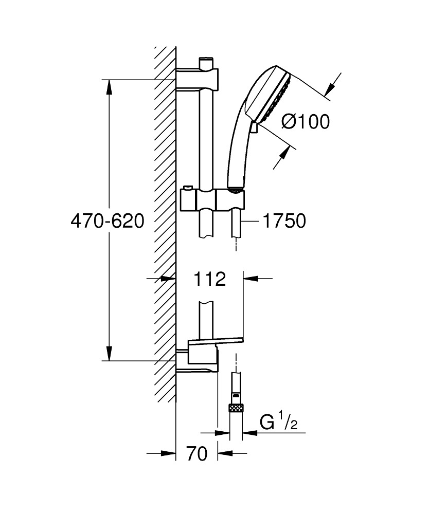 Caractéristiques de l’ensemble de douche 2 jets avec barre, Chrome Grohe Vitalio Comfort 100 (26398000) :