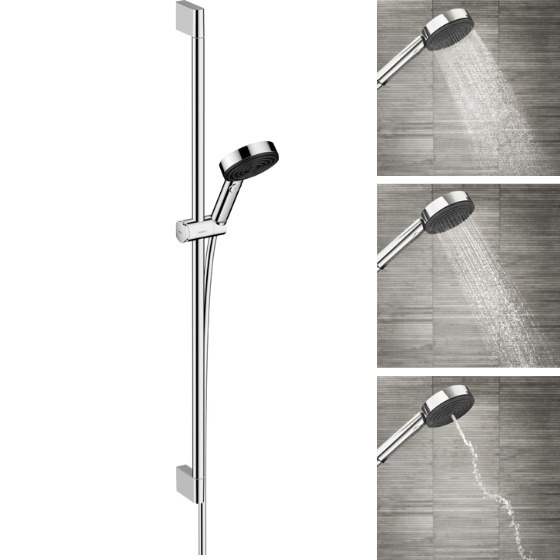 Caractéristiques du Set de douche XXL 105mm 3 jets EcoSmart + Flexible de douche 160cm + Barre de douche 90cm, Chrome (24171000), Hansgrohe Pulsify Select (24171000) :