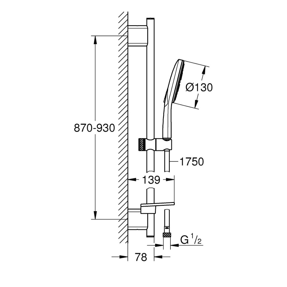 - Longueur de la barre de douche:900mm