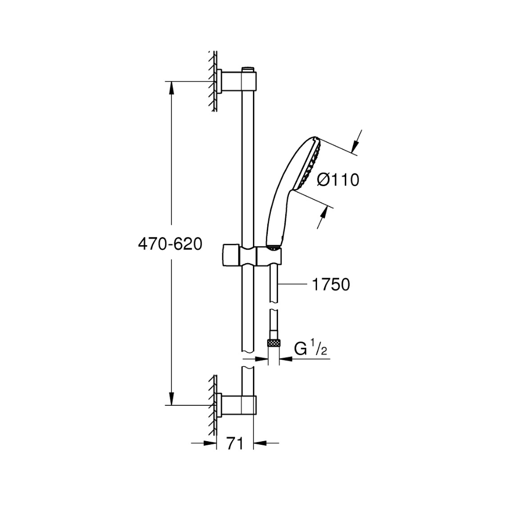 Caractéristiques du set de douche avec barre 60 cm + Douchette, chrome Grohe Vitalio Start 110 (G27942001) :