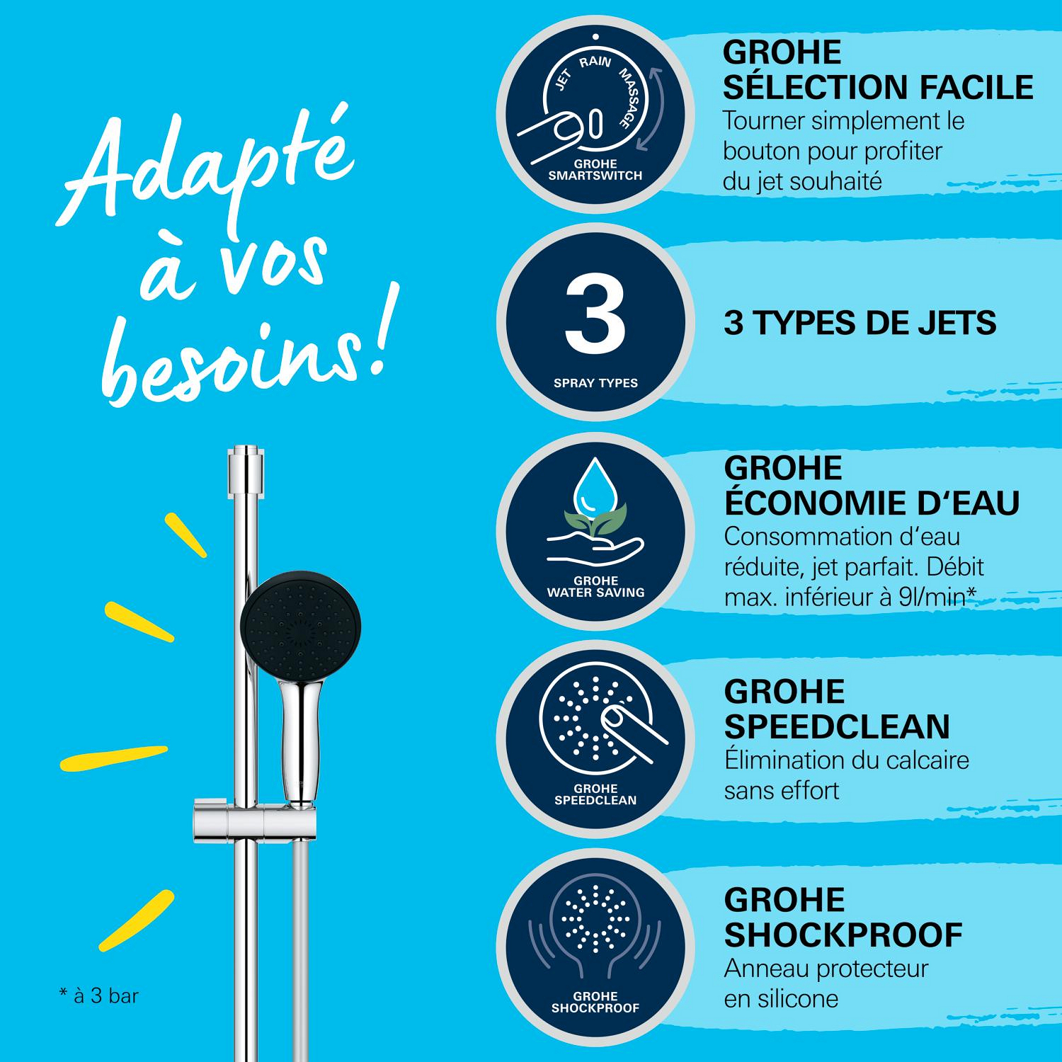 Grohe Vitalio Start 110 Set de douche avec barre + Douchette 3 jets, chrome (G26032001)