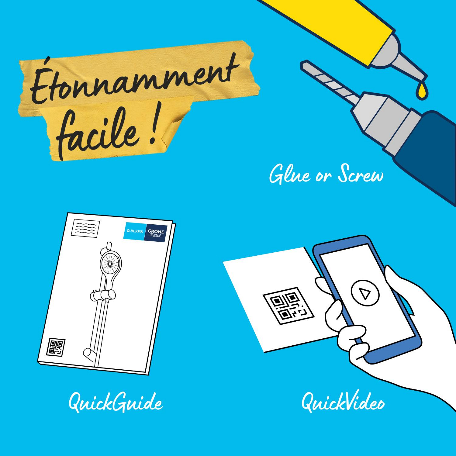 - Convient pour le vissage (vis et chevilles inclues) ou le collage (GROHE QuickGlue S 41 247 000 vendu séparément - 2 tubes sont nécessaires)