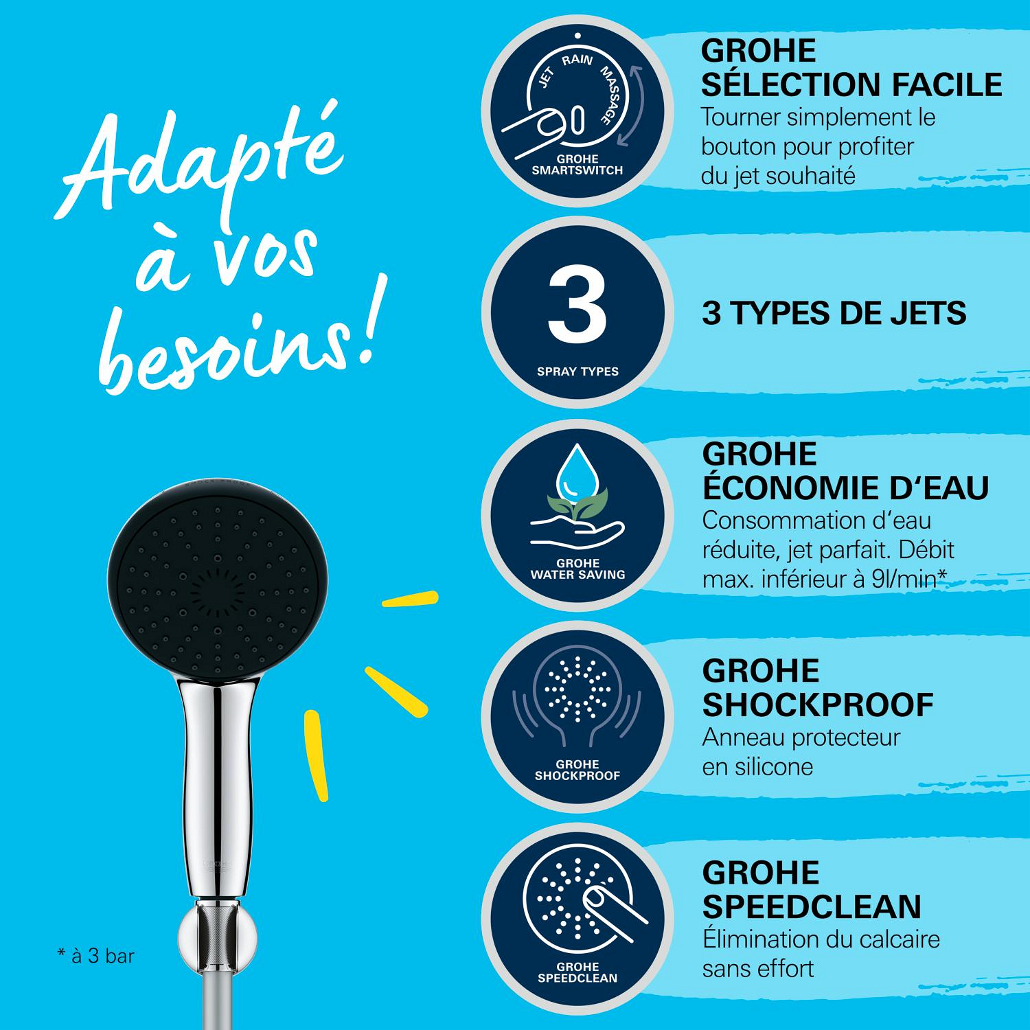 - GROHE Sélection facile - Tourner simplement le bouton pour profiter du jet souhaité
