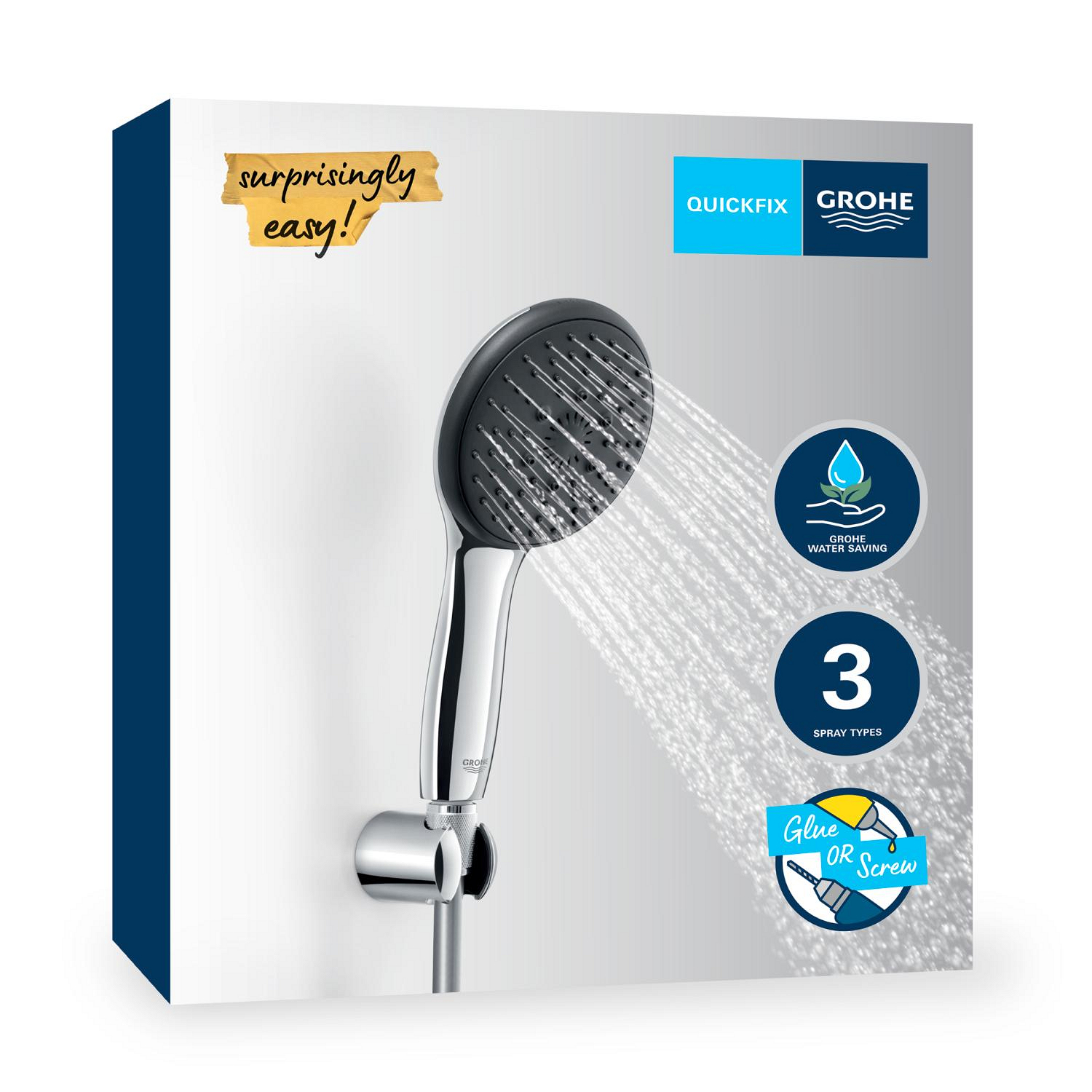 Grohe Vitalio Start 110 Set de douche avec support mural + Douchette 3 jets, chrome (G26769001)