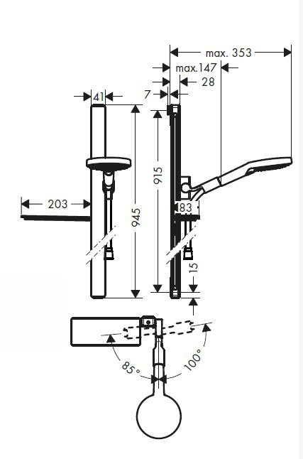 • curseur de douche entièrement chromé