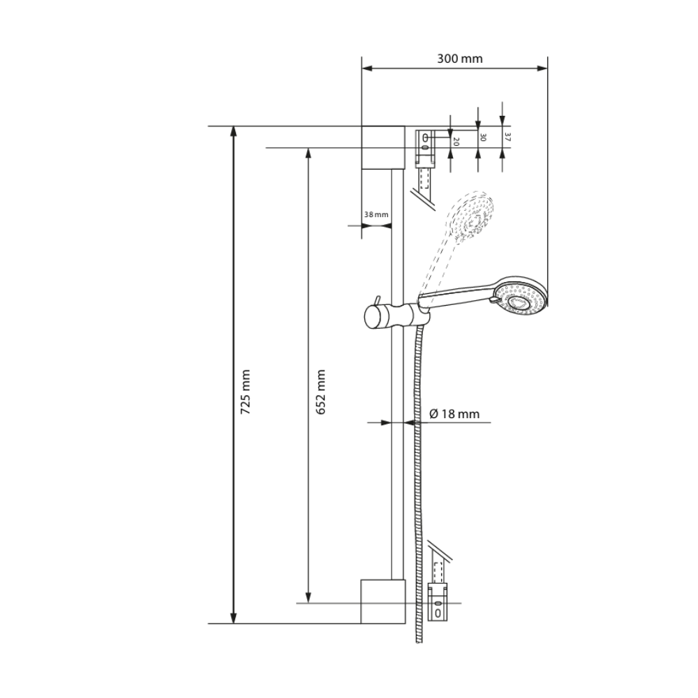 - Diamètre de la barre de douche : 18 mm