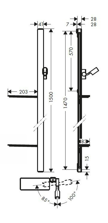 - type de barre de douche: profilé plat en aluminium avec finition verre sécurit