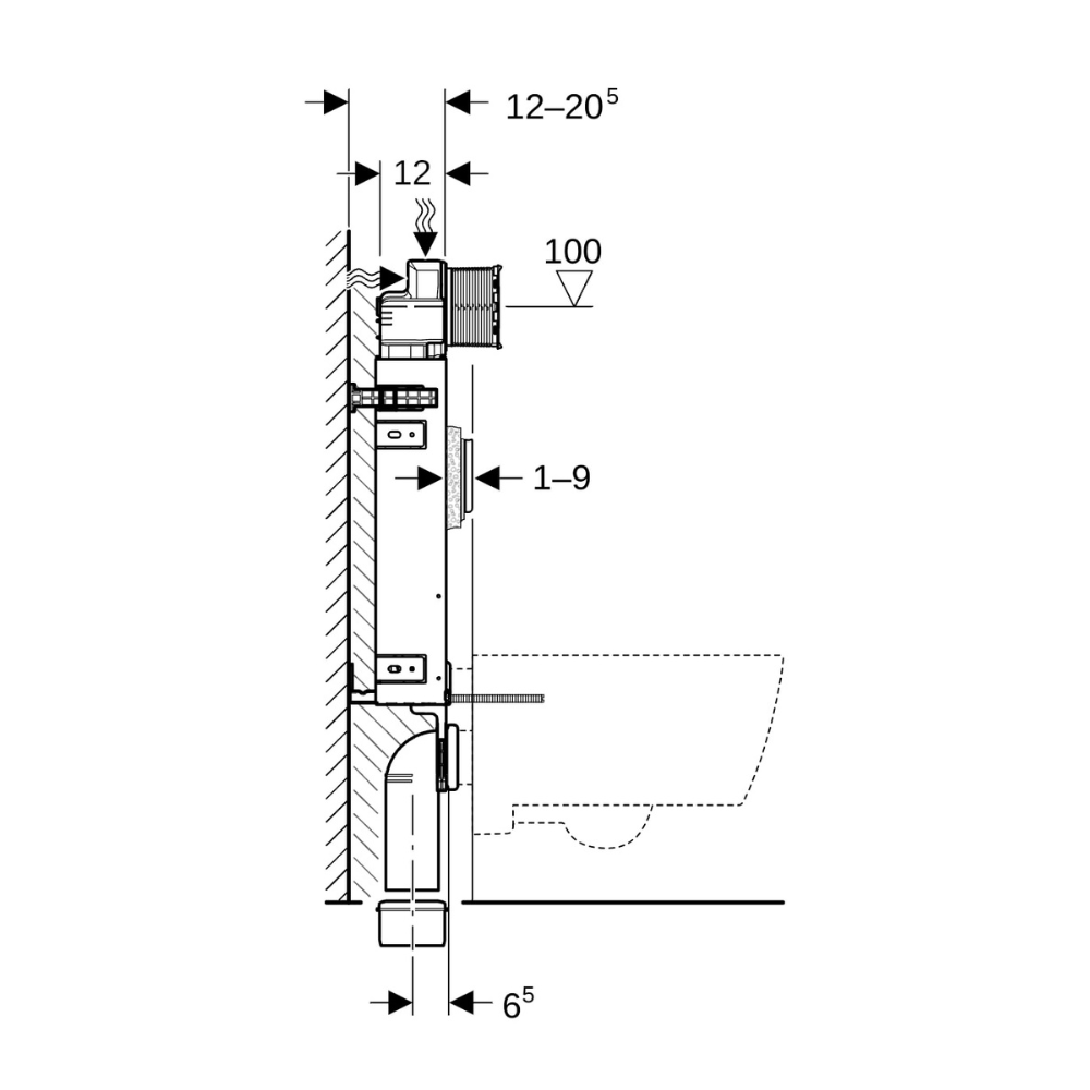 Geberit KOMBIFIX Elément de montage pour WC suspendu, 108 cm, réservoir UP320 à encastrer Sigma 12 cm (110.367.00.5)
