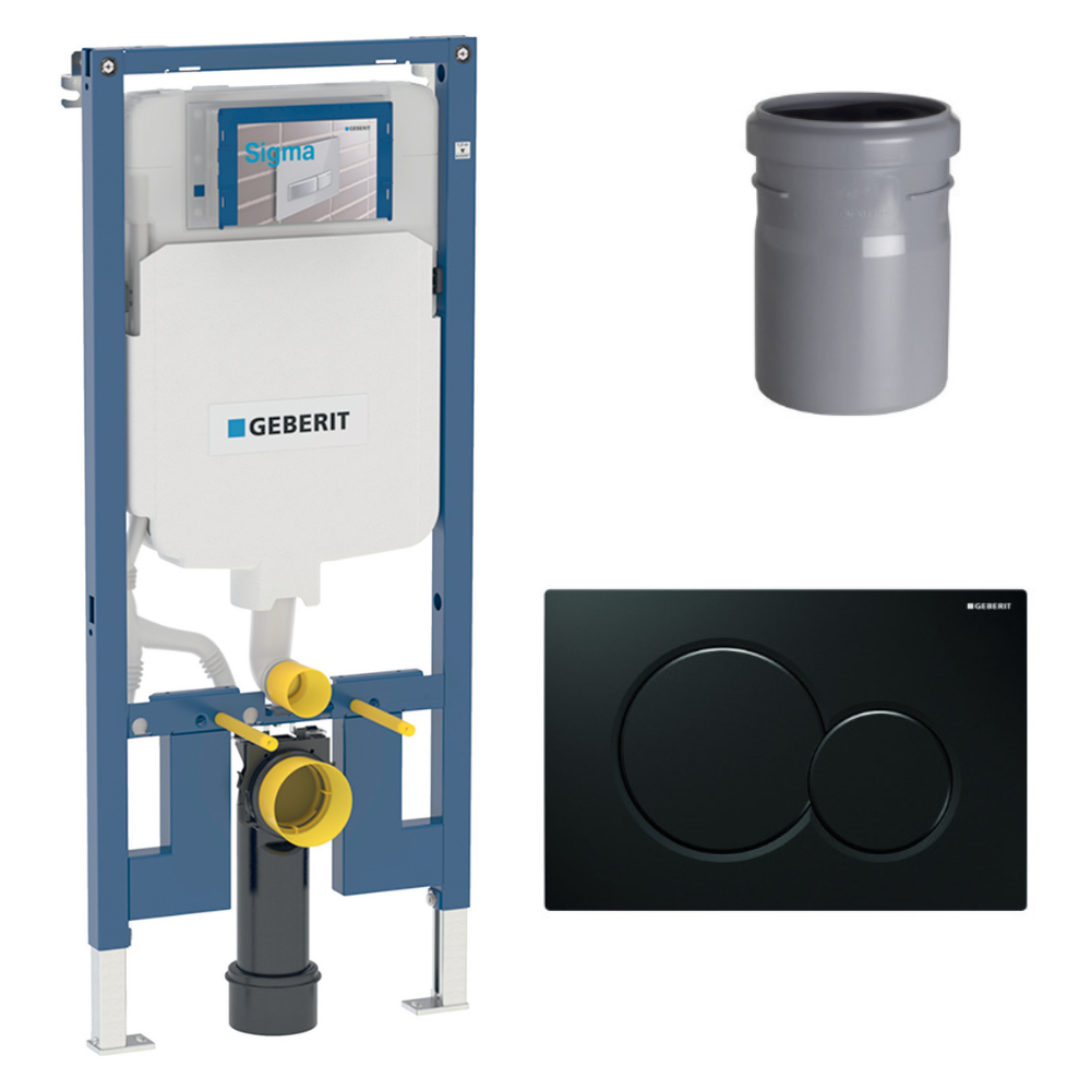 Caractéristiques du Pack Bâti-support extra-plat 114 cm UP720, gain de place + Plaque Sigma01, Noir brillant, Geberit Duofix (111.796.00.1-A) :