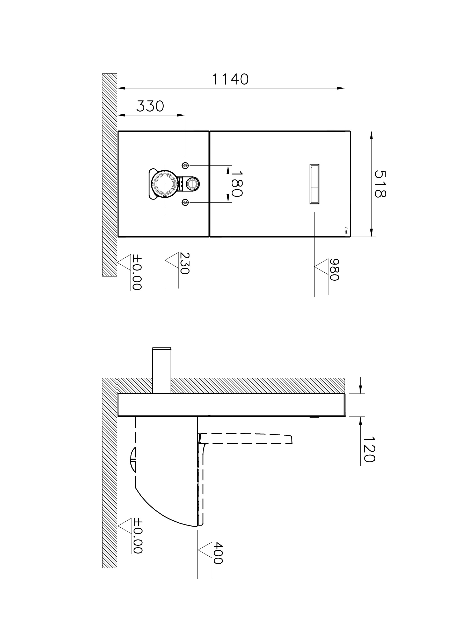Caractéristiques du Bâti-support en verre pour WC, 1140x518mm, Blanc, Vitra Vitrus (770-5760-01) :