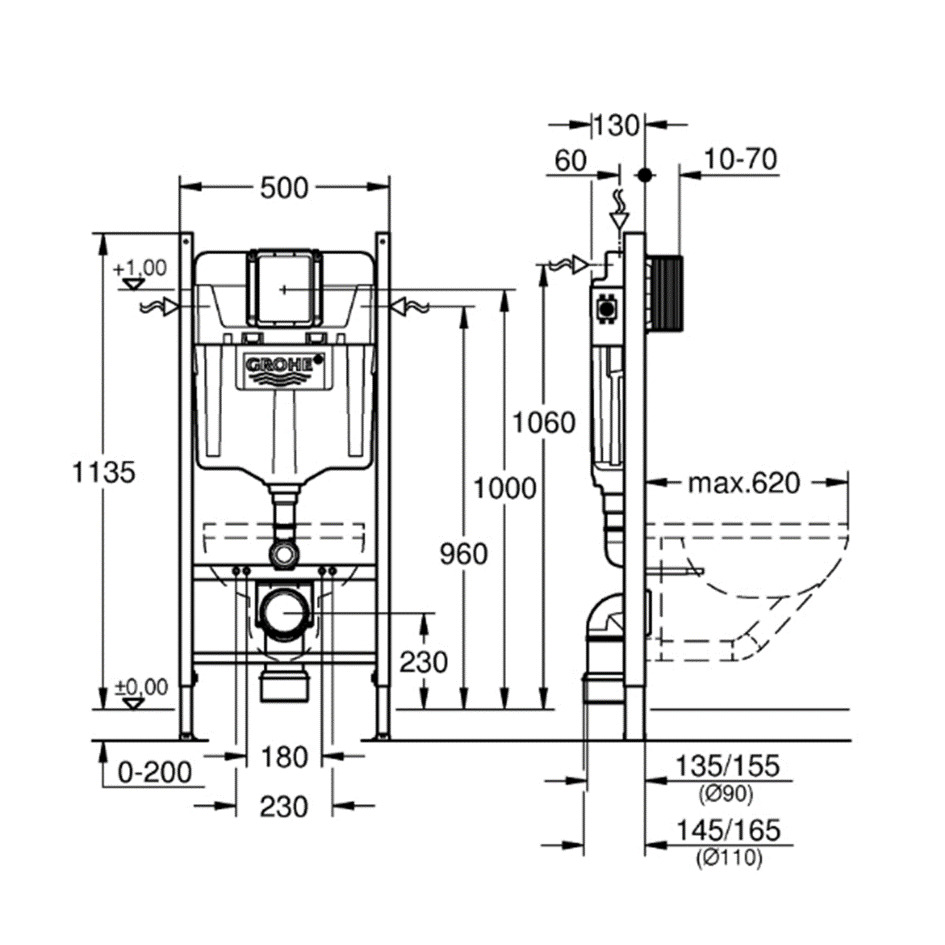RAPID SL PROJECT Bâti Support pour WC, 1,13M (38840000)