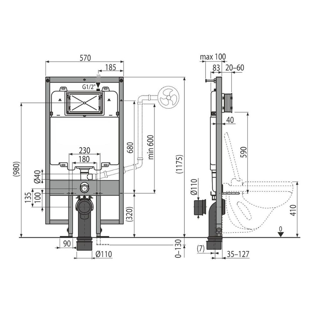 - Compatible avec des WC suspendus à entraxe de fixation 180 mm ou 230 mm