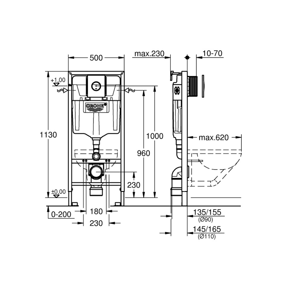 - Réservoir de chasse d’eau encastré GROHE GD 2 (6 à 9 litres)