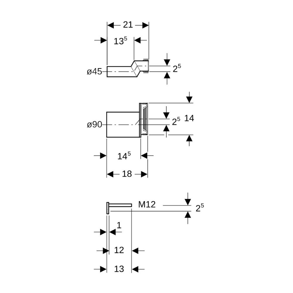 Jeu de manchettes raccordement désaxé 2,5 cm avec tige filetée (405.116.00.1)