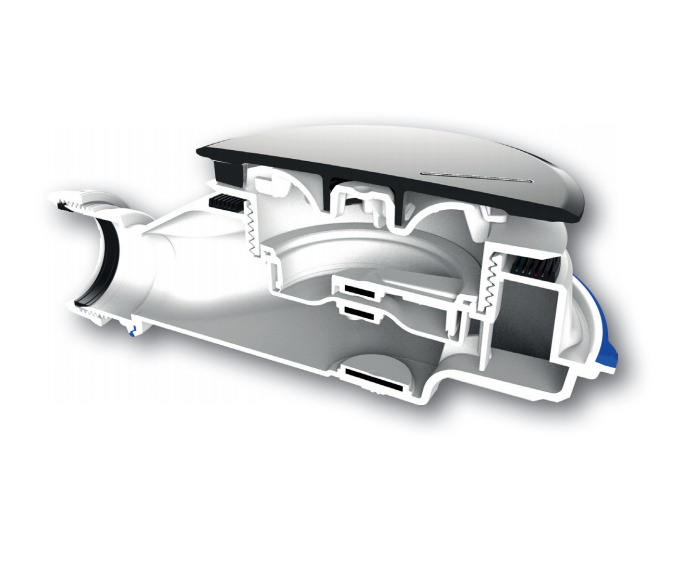 - Contre-clapet bi-matière : polypropylène + élastomère + aimant surmoulé