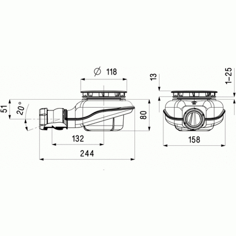 - Garde d'eau de 50 mm, système anti-remontées d'odeurs