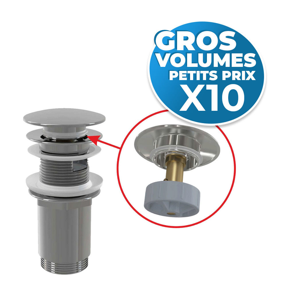 Lot de 10 bondes Clic-clac raccord 5/4", pour lavabo avec trop-plein, laiton chromé.
