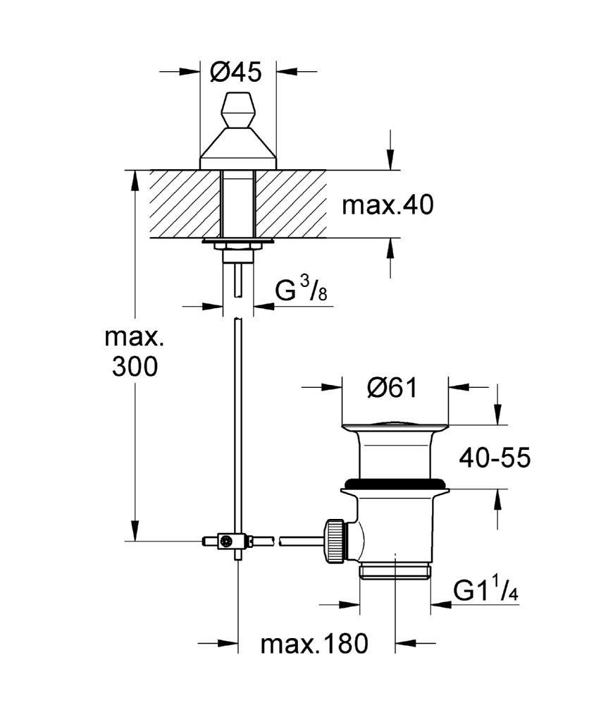 - Garniture de vidage 1 1/4" sur table