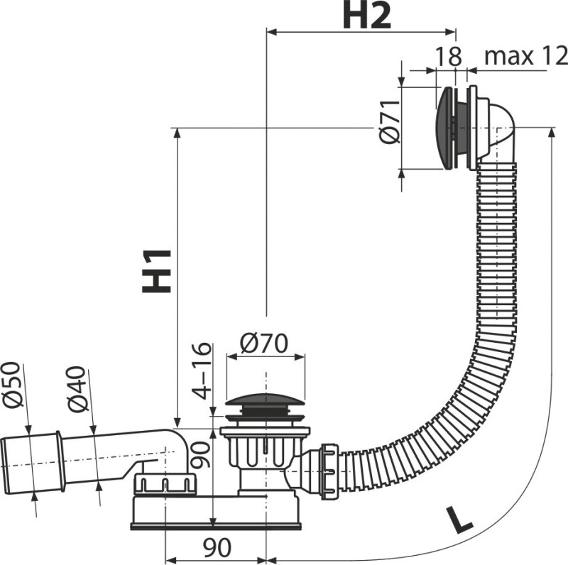 Bonde clic-clac de bain avec siphon, Noir mat (A507BLACK)
