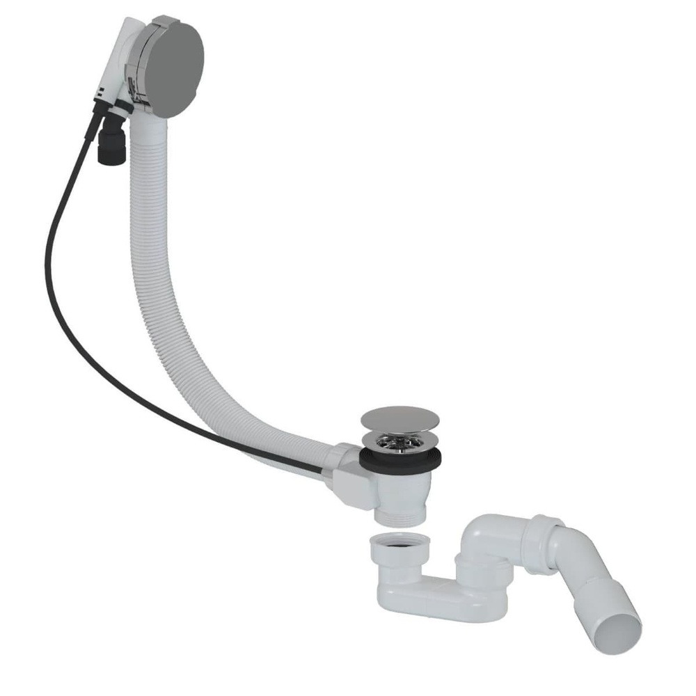Système de vidage avec siphon, pour baignoires jusqu’à 80 cm d’entraxe. Finition chrome, design discret et efficace.