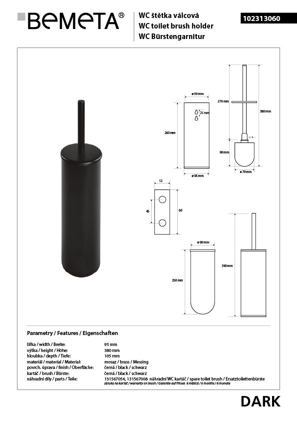 BEMETA Brosse de toilettes DARK à poser ou suspendre (102313060)