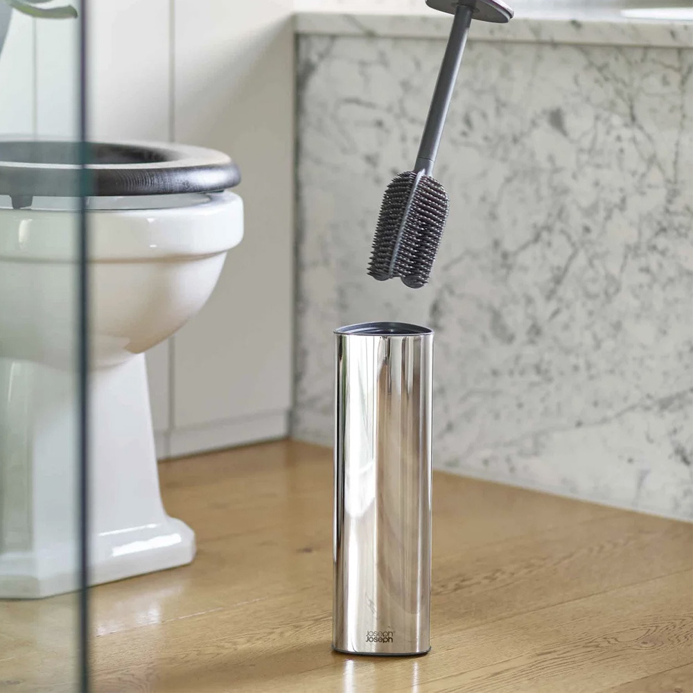 Joseph Joseph Flex™ 360 Luxe brosse de toilette 360° anti-goutte en acier inoxydable, chrome (70583)