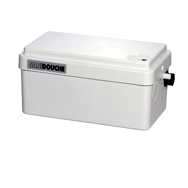 Grâce à ses dimensions compactes et à son enclenchement bas, la pompe sanitaire de douche Sanidouche+ peut s'intégrer sous un receveur de douche ou dans un meuble de salle de bains. Avec son faible niveau sonore (46 dB(A)), elle se fera discrète une fois installée.