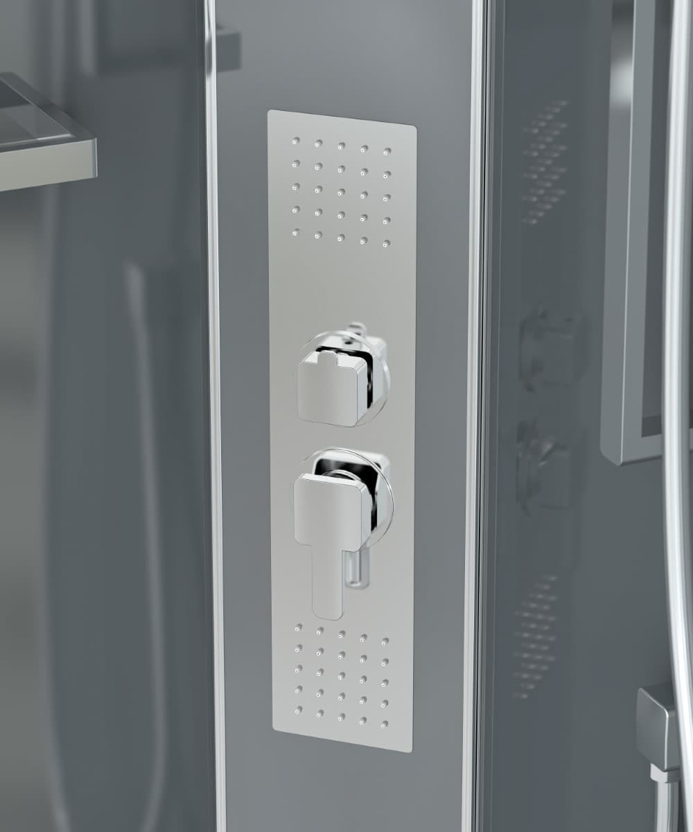 La Cabine de Douche SATBOX allie parfaitement minimalisme et sophistication avec son verre de 6 mm d'épaisseur. Sa structure solide et épurée s'intègre harmonieusement dans votre salle de bain, créant une ambiance à la fois moderne et lumineuse. Pour une détente optimale, elle est équipée de buses stratégiquement positionnées, offrant un véritable moment de relaxation à chaque utilisation. Une solution élégante et fonctionnelle, pensée pour valoriser l’espace tout en apportant une touche contemporaine à votre intérieur.