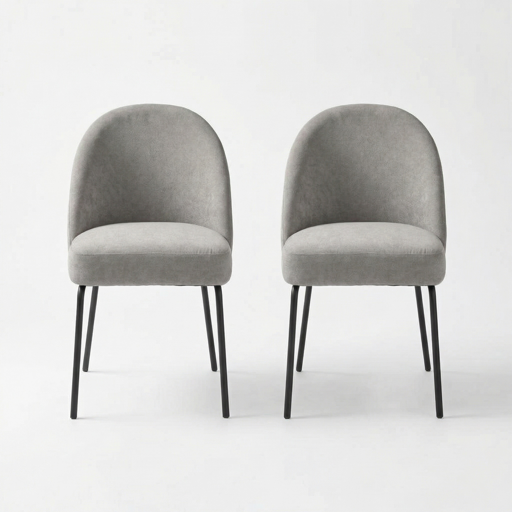 Caractéristiques du pack de 2X chaises de salle à manger rembourrées en velours gris 84x57x49 cm, pieds en métal noir, Unique Furniture (by Siko) Creston (34680001) :