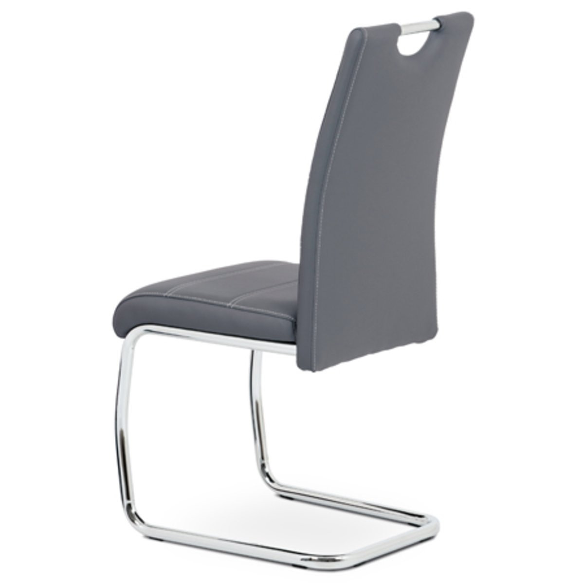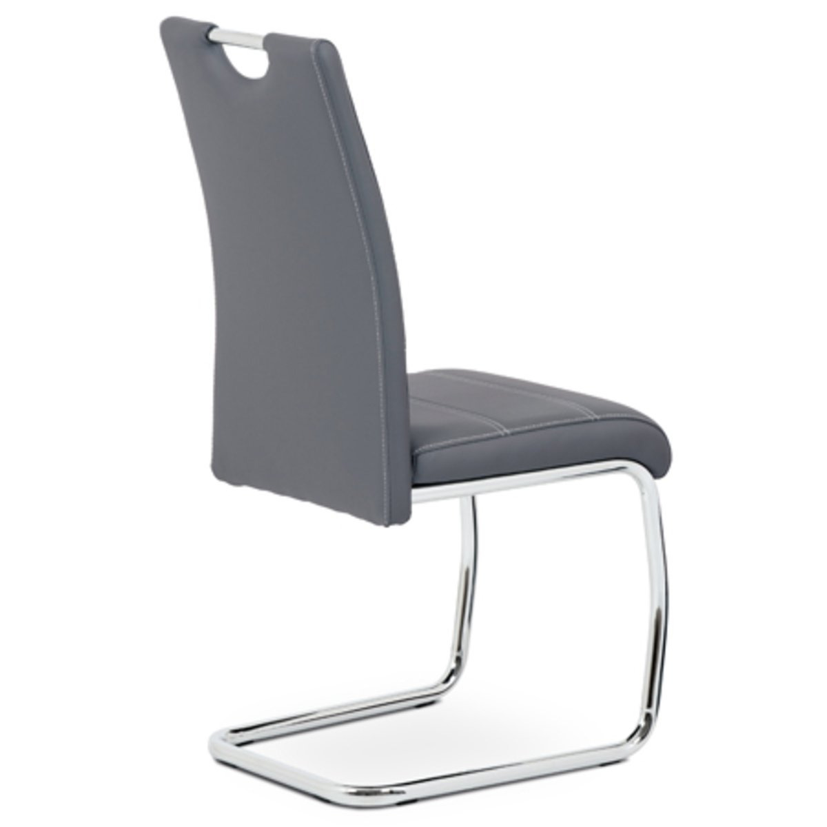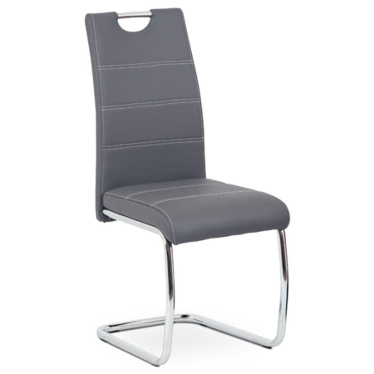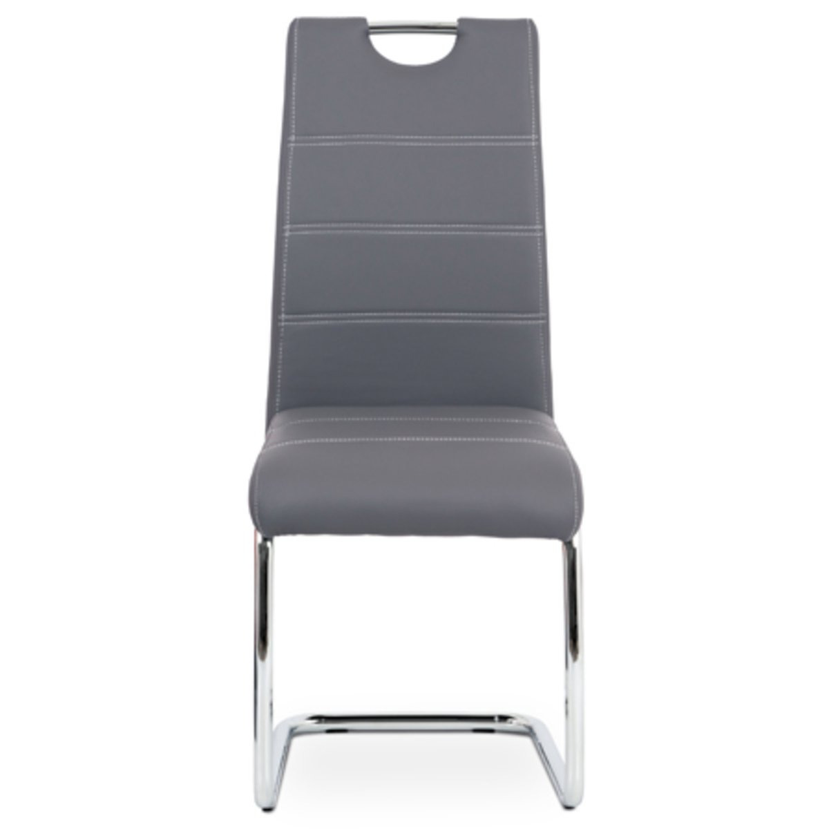 Caractéristiques du pack de x4 chaises de salle à manger modernes en écocuir gris 98x57x43 cm, coutures blanches, base basculante en métal chrome, Autronic (HC481GREY) :